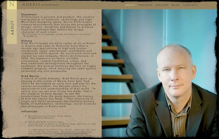 In 2010 Nashville Architect Brad Norris contacted me in need of a corporate headshot because he was re-branding his business and putting together a new website.  We talked over the phone about what he was looking for, agreed on a price, decided on the location and I arrived looking forward to doing what I love best…taking pictures on location.