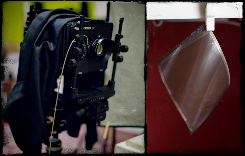 As I set up the tripod it amazed me how much I had forgotten in regards to using a 4×5 camera. I first had to locate the little screw adapter just to put the camera on the tripod, struggled with what lens I wanted to use and had to reacquaint myself to the swings and tilts of the camera. It was awkward focusing on the ground glass- upside down, backwards and dark. These were things that came second nature to me many years ago and as an assistant in my early 20’s, back then I was setting up 8×10 cameras to shoot for Macy’s and Red Lobster accounts.